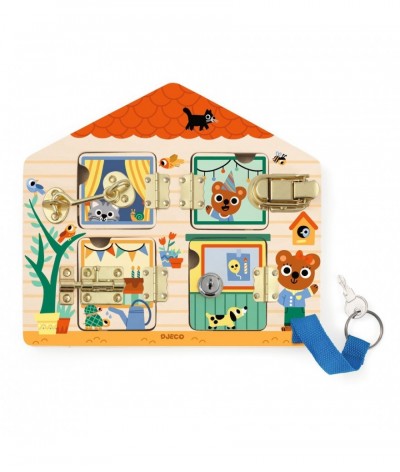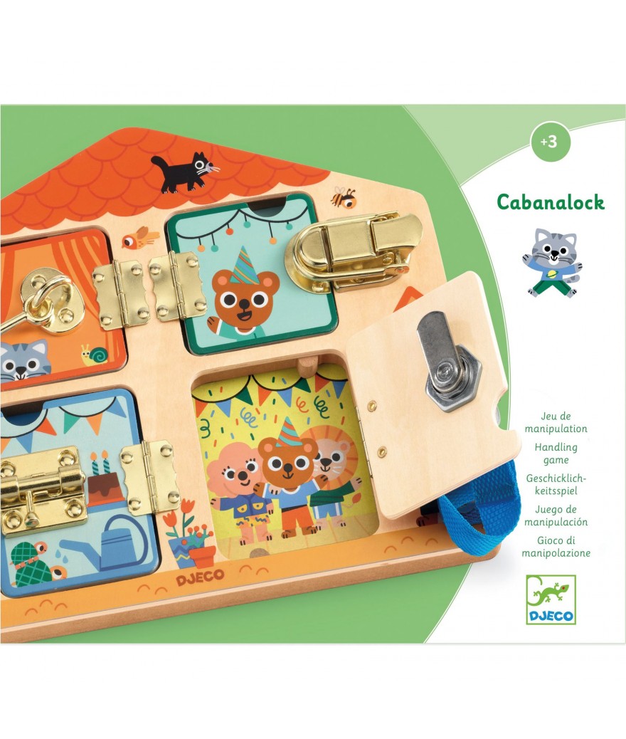 Een spel voor de motoriek in de vorm van een huis waarbij het kind oefent in het openen en dichtdoen van sloten. Het kind ontdek de wereld van het poesje via afbeeldingen. Vanaf de leeftijd van 3 jaar begeleidt Cabanalock de eerste leerprocessen.