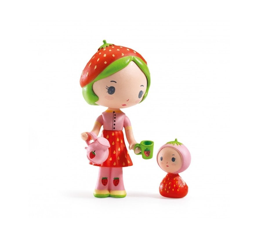 Uit de serie Tinyly van Djeco zijn dit Berry met haar bessenvriendinnetje Lila. De speelgoedpoppetjes van Tinyly zijn 7.5 cm hoog en gedetailleerd gemaakt. Ieder figuurtje heeft zijn of haar eigen accessoires en kameraadje.