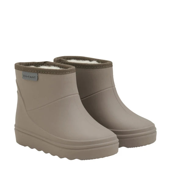 Heerlijk warme regenlaars in thermoplastisch elastomeer met off-white wol mix voering voor temperaturen tot -10 graden Celsius. De laarsjes zijn lichtgewicht, hebben een grove zool voor goede grip en een reflecterend Enfant logo op de zijkant. Perfecte kwaliteit!