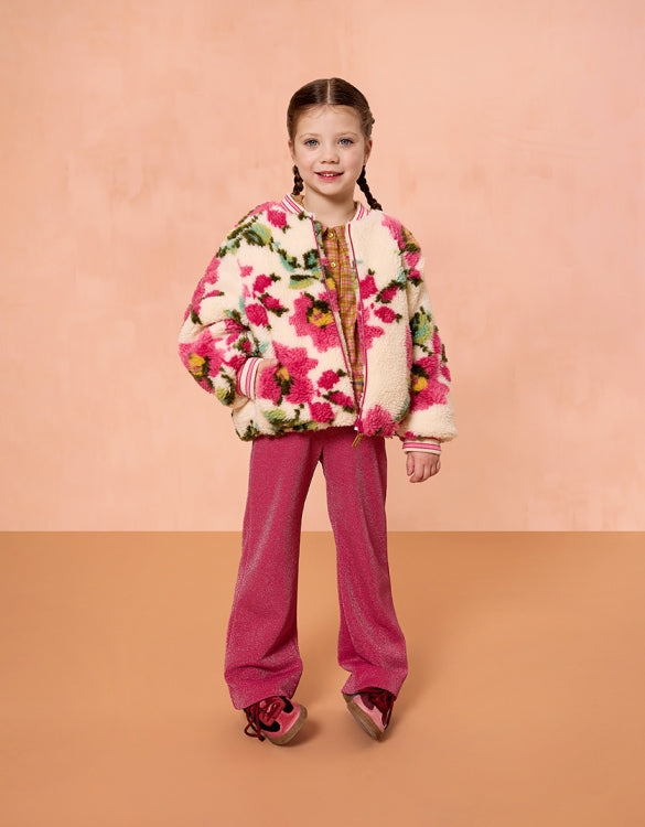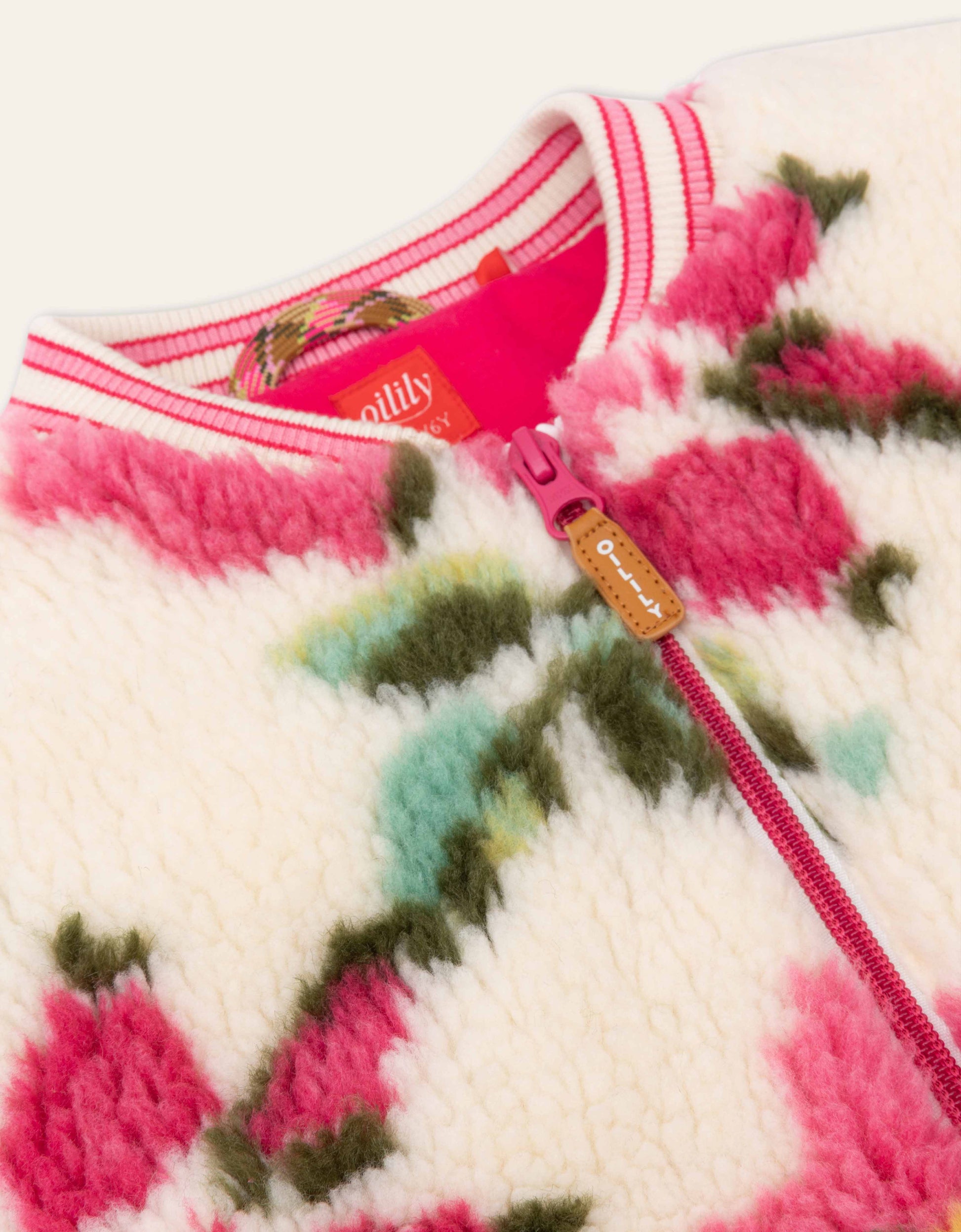 De grote romantische bloemen van print Vroukje staan beeldig op deze teddy bomber. Met stoere kraag, fijne zakken en knoopsluiting.