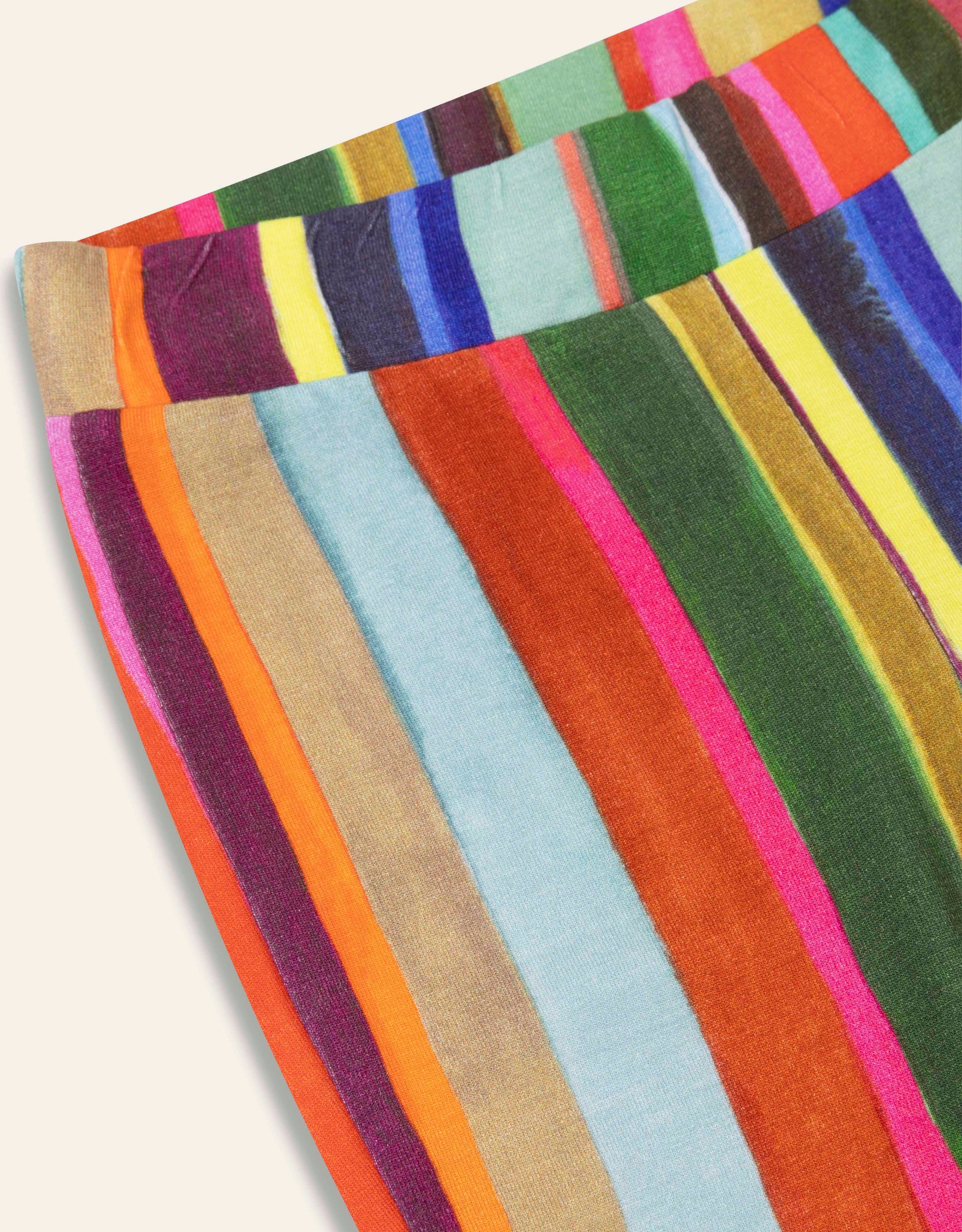 De print Pieternella is geïnspireerd door de tulpenvelden gezien van bovenaf. Het maakt deze vrolijke strepen nog leuker en het staat speels op deze flared legging.