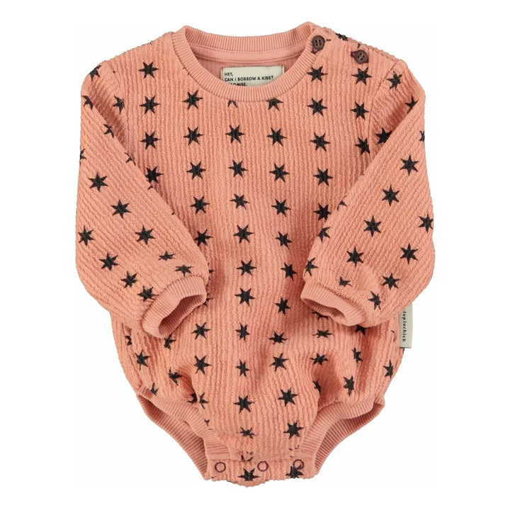 Piupiuchick | Long sleeve romper| Pink w/ black stars