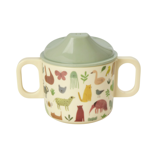 Melamine babybeker voor de allerkleinsten van het gezin. De beker is ontworpen met twee praktische handvatten. Het is de perfecte startbeker voor kleine vingers. Deze babybeker heeft een groene deksel en de zogenaamde 'Sweet Jungle' (Lief Oerwoud) print en heeft een groene deksel ... waardoor het drinken tijdens een maaltijd een echte oerwoudverkenning wordt!