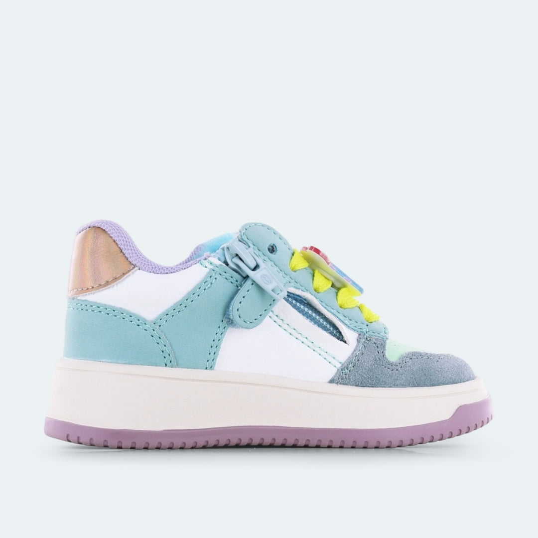 Deze stoere meidensneaker met een vrolijk design heeft leuke fluffy details. Maar wat deze sneakers echt speciaal maakt, zijn de vrolijke figuurtjes op de elastische veters. Ze zijn gegarandeerd een hit!