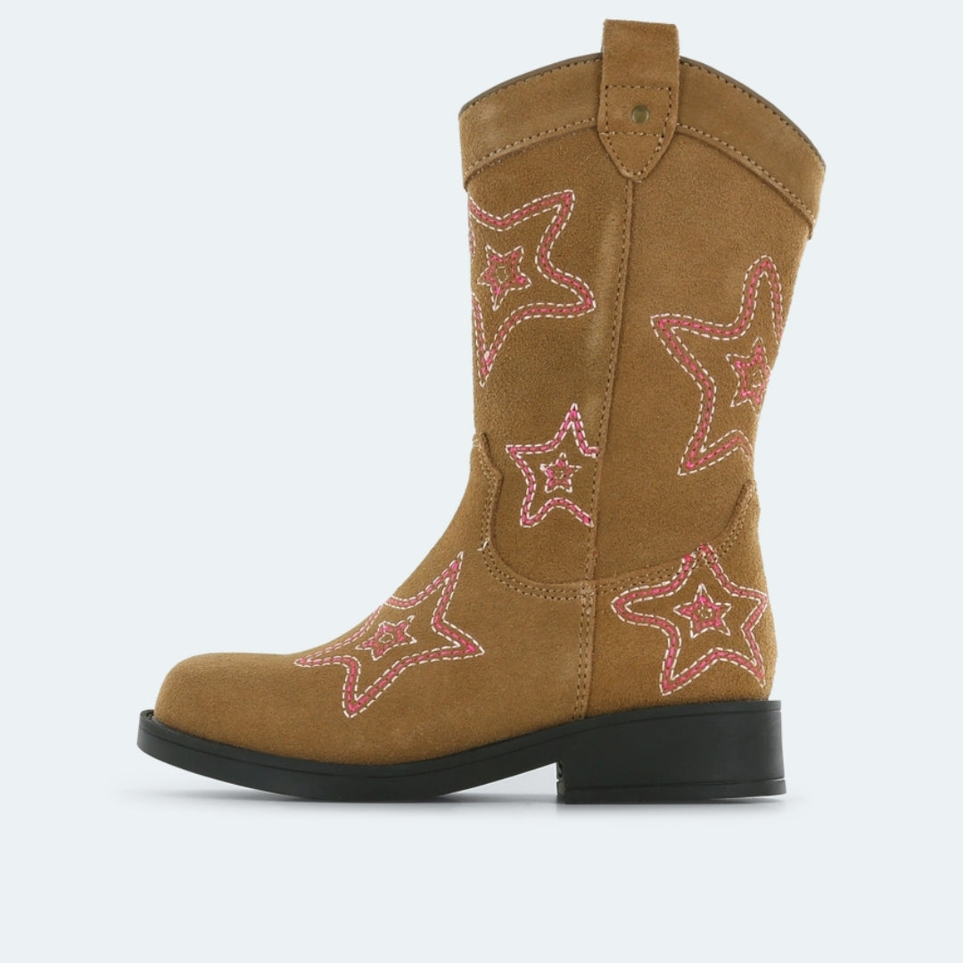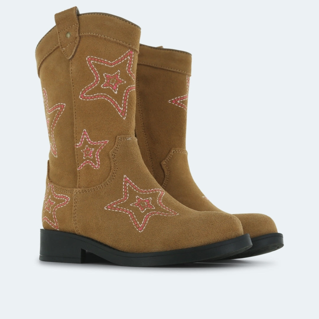 Yihaaa! Cowboyboots zijn nog steeds helemaal hot en dit model is om verliefd op te worden. De warme cognac kleur en stoere sterren maken deze laars tot een echte eyecatcher. De zool met subtiele hak maakt de laars helemaal af, want welk meisje wil nou niet op een hakje lopen?